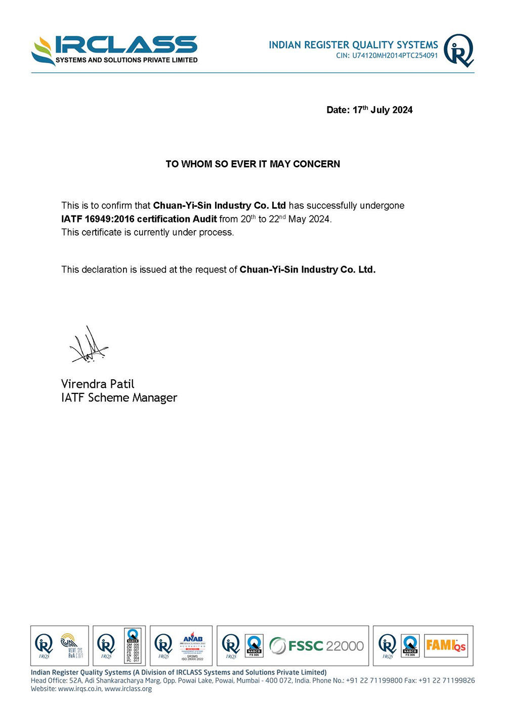全憶鑫專業鍛造廠通過IATF16949第三階段認證